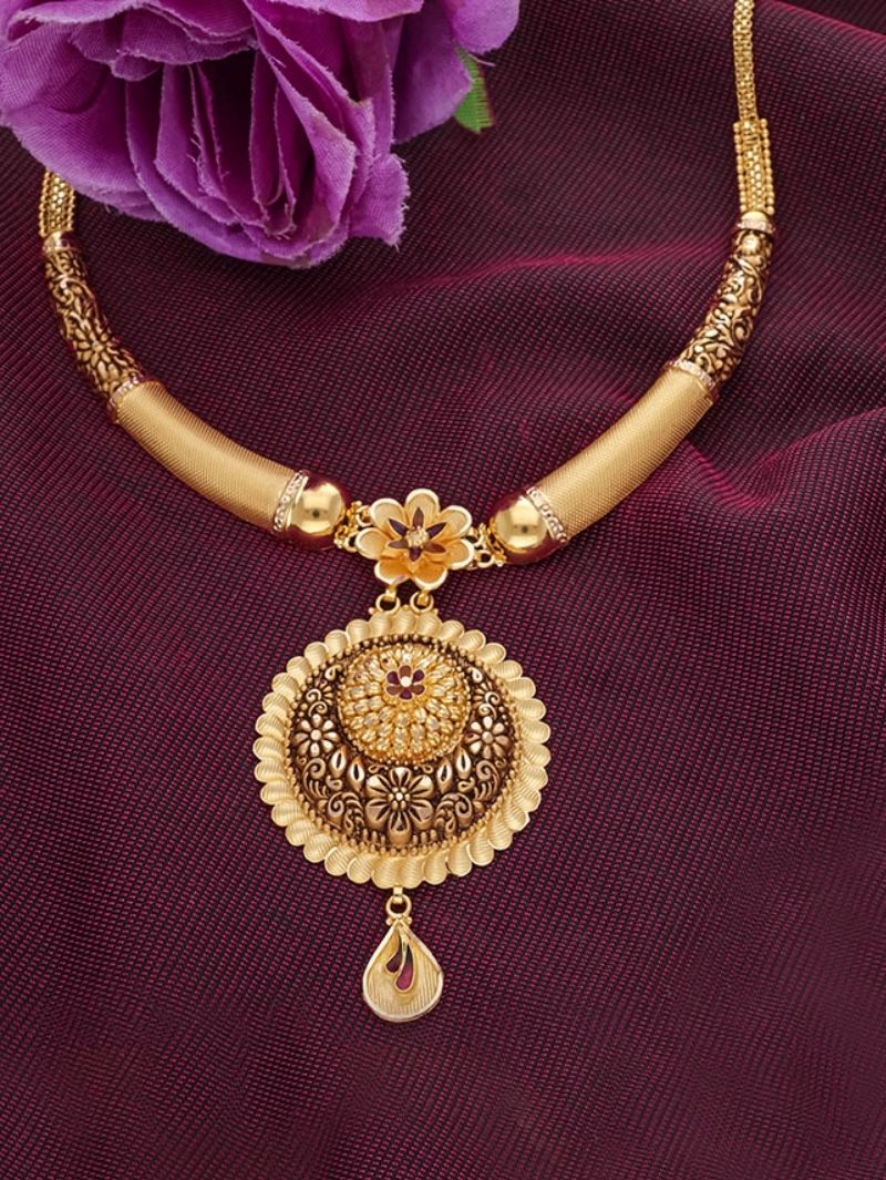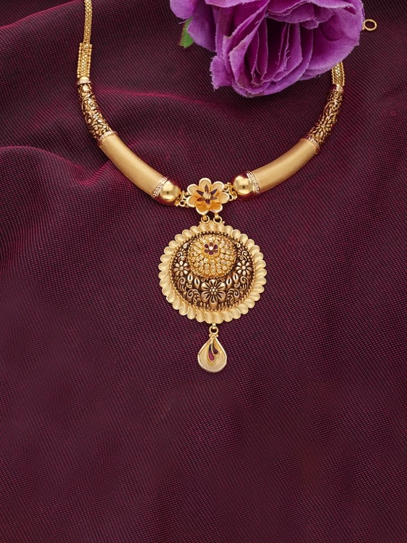 This Classical Antique Necklace reflects the grandeur of traditional Indian jewelry with its antique finish and intricate motifs. A perfect pick for brides, it elevates any saree or lehenga with regal sophistication. Durable and timeless, it is a jewelry piece that never goes out of style.