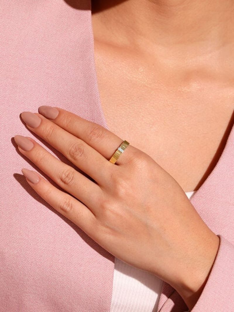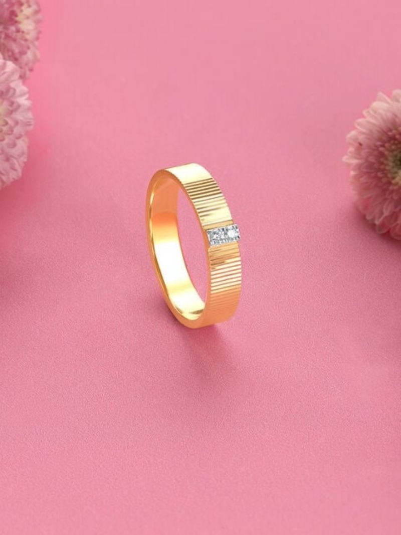 Classic structured gold plated ring with diamond detailing for a regal look.
