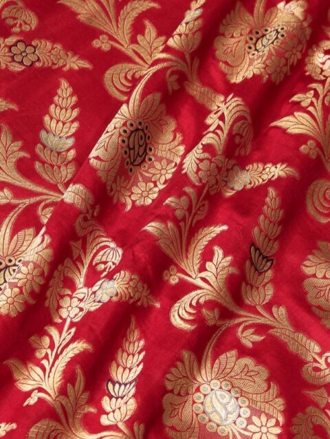 Experience luxury with this Woven Banarasi Crushed Tissue Saree, designed with shimmering zari patterns and a crushed finish that enhances its opulence. A perfect choice for weddings, receptions, and festive nights, it gives a royal touch with its lightweight yet glossy drape. Best styled with heavy jewelry for an unforgettable presence.