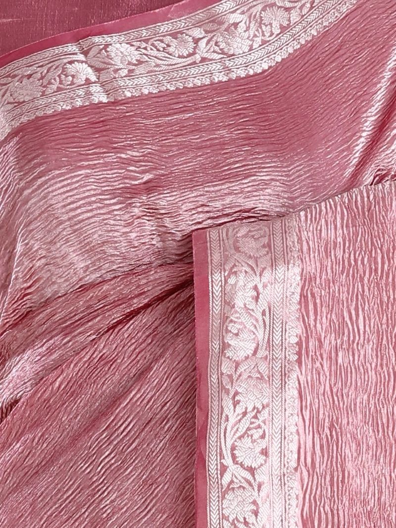 Shimmering Banarasi tissue saree with crushed texture, adding glamour to festive wear.